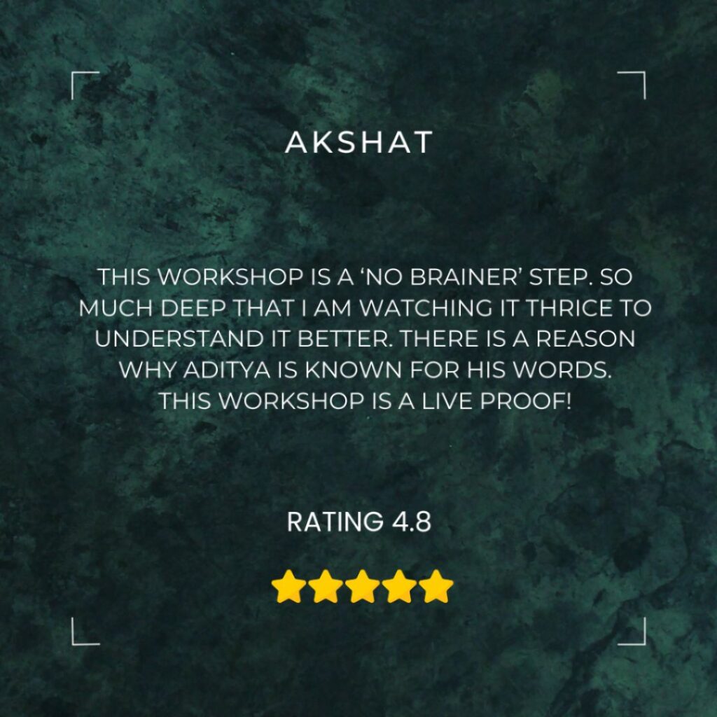 Your credentials to access the workshop will be delivered to your inbox within 3-8 minutes of your purchase. Please check your promotions/updates tab and spam folder as well. Still not able to login then kindly mail at rebelsuniversityak@gmail.com